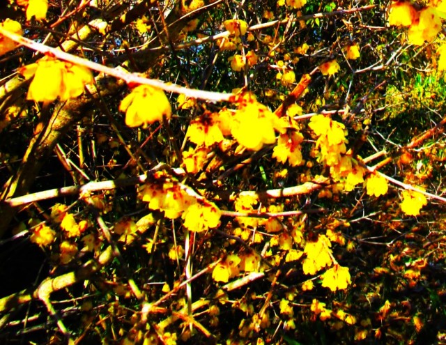 - 素敵な色香を放つ蝋梅(ろうばい)の花々♡橋本・恋野の浮御堂の池畔~家族連れらうっとり♪