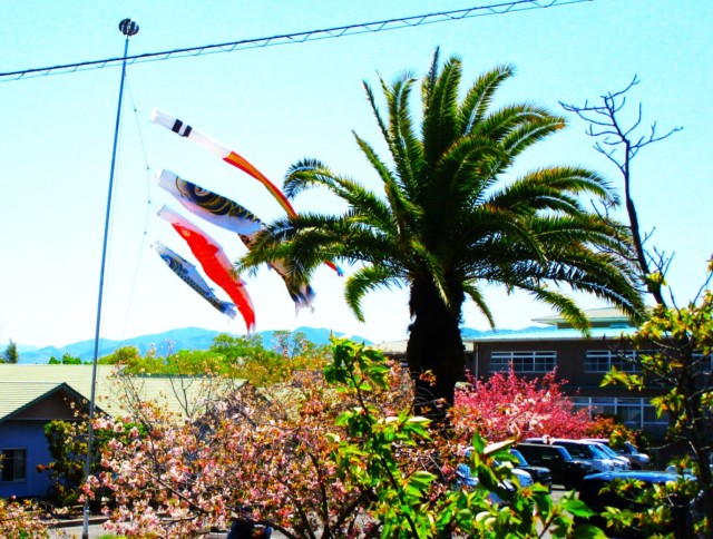 青空「鯉のぼりファミリー」鮮やか、すぐ下では「御衣黄桜」も開花♡橋本の特別養護老人ホームひかり苑・天佳苑~高齢者ら家族とともに心和ませる♪ (04/16 21:35)