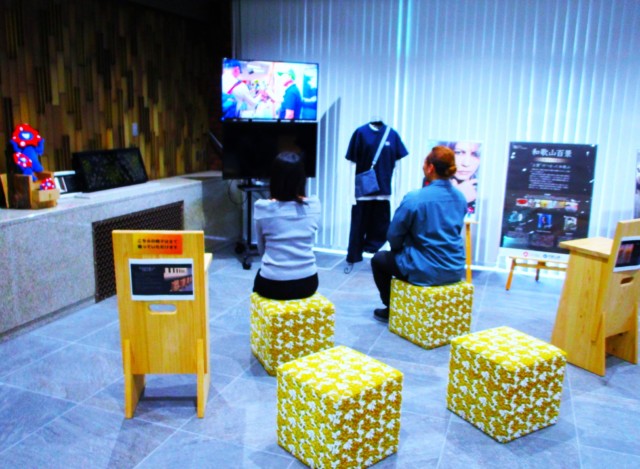 懐かしの大阪・関西万博「和歌山パビリオンゾーン」♡橋本の伊都振興局1階ロビーに紀州へら竿や手すき和紙の衣装、高野口パイルソファーなど展示♪2月27日(金)まで「どうぞお楽しみ下さい」