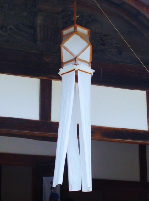 この切子灯籠は、木枠を組んで切子の形にし、その下に幅約25センチ、長さ約2・4メートルの和紙を懸垂。お盆の高野山、そして自宅に帰る祖先の霊の目印としている。