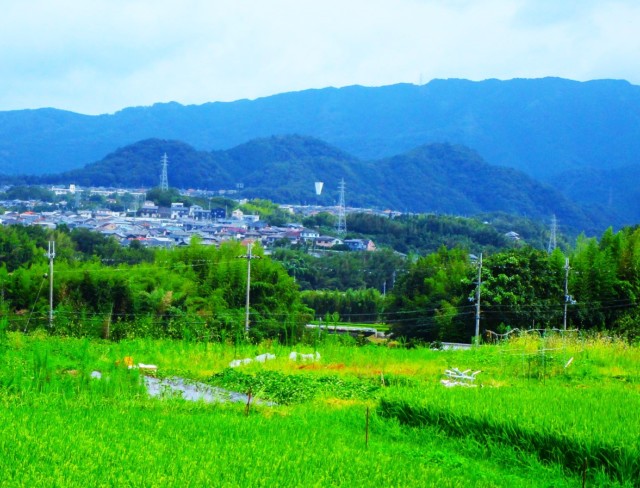 一方、南海高野線・御幸辻駅近くの杉村公園・頂上広場から南を見渡すと、彼方に高野山が聳え、手前の国城山(標高552㍍)や家々も影絵のよう。