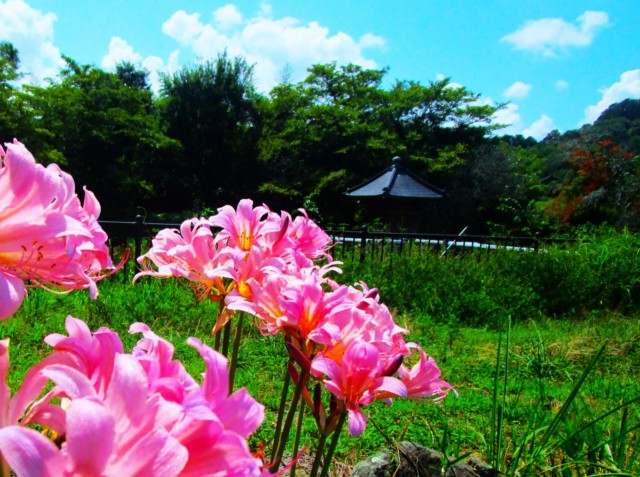 ピンクの夏水仙や黄色いオミナエシ満開♡橋本・恋野の浮御堂近く~8月22日(金)は市制20周年記念「納涼 盆踊り」楽しいよ♪