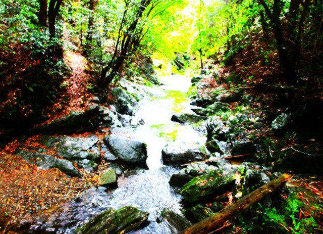 ここは和歌山・奈良両県境から、紀の川へ注ぐ落合川のほとり。奈良側から古道を降りると、川の両岸から巨石が二つ突き出し、その間を滔々と水が流れている。