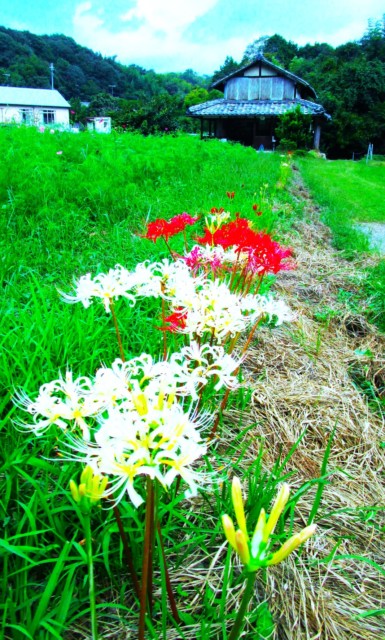 紅白のコスモス&曼殊沙華あざやか♡「飛び越え石」で名高い橋本・真土万葉の里♪