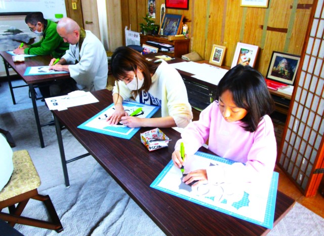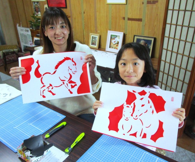 素晴らしい「宝来飾紙」を完成させた橋本市隅田町の前田瑞記(まえだ・みずき)さん(43)と小学4年・果穂(かほ)ちゃん母子は「来年の床の間に飾り、その後も大切に保存、供え続けたい」とほほ笑んでいた。