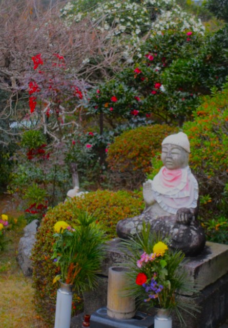 満開の山茶花に「子育て地蔵」&「子ども地蔵」まばゆく♡橋本の高野山真言宗・子安地蔵寺で新春への足音~参拝者ら子どもたちの幸福人生祈る♪