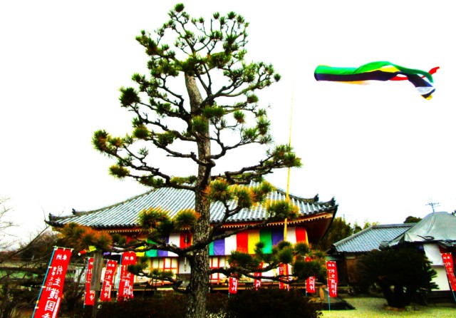 和歌山県橋本市隅田町下兵庫の真言律宗・利生護国寺(りしょうごこくじ)は令和8年1月3日、中空に掲げた五色の吹き流しと、境内参道に林立する幟旗が神々しくはためき、夜は今年初の満月(ウルフムーン)に輝いた。