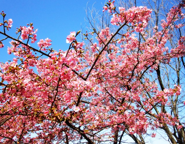 和歌山県橋本市清水の国城山(くにぎさん=標高552㍍)の山頂付近で、3月1日(日)午後、橋本・伊都地方では珍しい河津桜(かわづざくら)が満開となり、まばゆく暖かい早春の陽気を漂わせ、登山客の心を和ませていた。