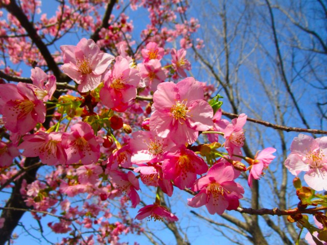 あぁ早春、橋本・国城山で河津桜が満開♡登山客ら静かに深呼吸「家族・友人らを楽しませたい」とスマホ撮影♪